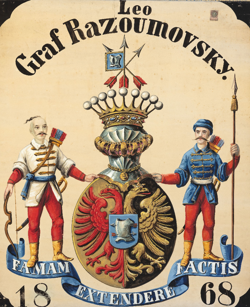 Pohřební štít hraběte Leona Razumovského užitý při smutečních obřadech ve Svatoštěpánském dómu ve Vídni, rok 1868 - soukromá sbírka, foto SZM