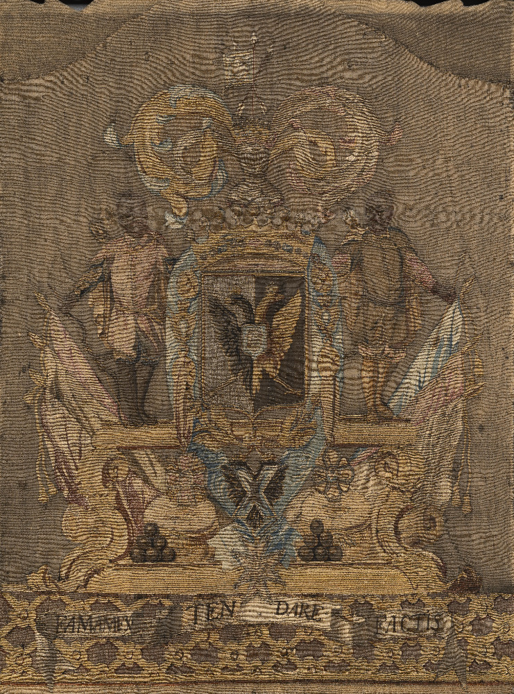 Fragment tapiserie s erbem Kirila Razumovského dle tradice pocházející ze zámku v Baturynu, kolem pol. 18. století - soukromá sbírka, foto SZM