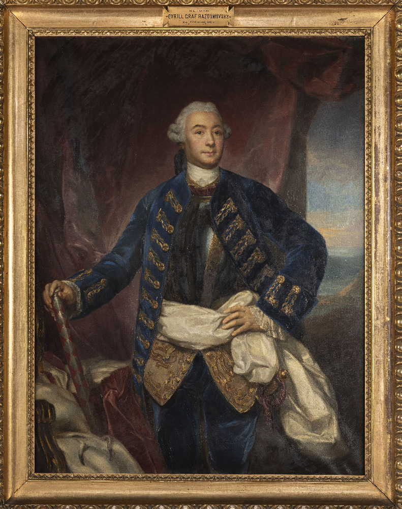 Portrét hraběte Kirila Razumovského jako hejtmana záporožského vojska a levobřežní Ukrajiny, podle barokního originálu ze zámku Gatčina nedaleko Petrohradu, kopista Seidenberg, poč. 20. století (po roce 1905) - soukromá sbírka, foto SZM