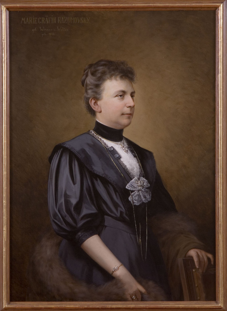 Rudolf Templer (1837–1905), hraběnka Marie Razumovská, roz. Wiener von Welten, 90. léta 19. století, z původní rodové portrétní galerie zámku Radkov-Dubová - Národní památkový ústav – Státní zámek Hradec nad Moravicí, foto SZM
