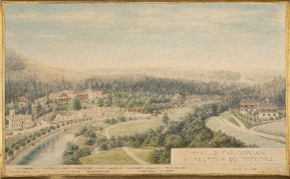 Ludwig Tischler (1840–1906), pohled na areál lázní Jánské Koupele na Opavsku, rok 1900 - soukromá sbírka, foto SZM