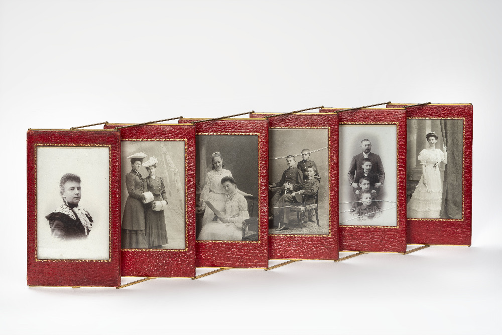 Dekorativní rámeček se souborem šesti kusů portrétních a skupinových rodinných fotografií hrabat Camilla a Marie Razumovských a jejich dětí, kolem roku 1900 - soukromá sbírka, foto SZM